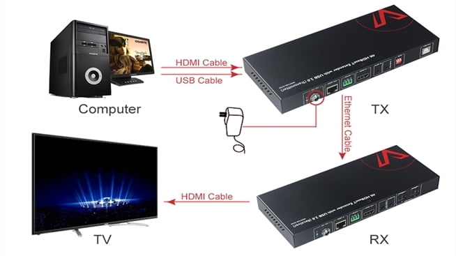 4K HDMI 2.0 HDBaseT Extender, Supports HDCP2.2, HDR10, 2-Way IR, PoE & RS232